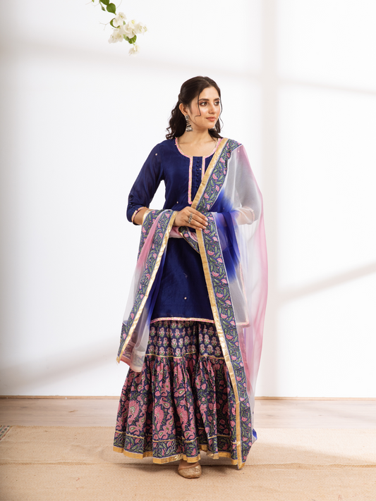 Rasika Neela Chanderi Sharara Set