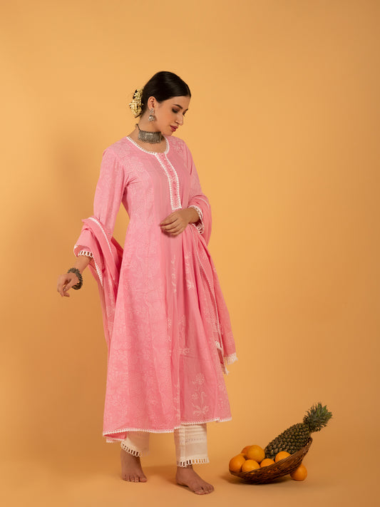 Gulaab Khari Pink Kurta White Pants Mulmul Dupatta