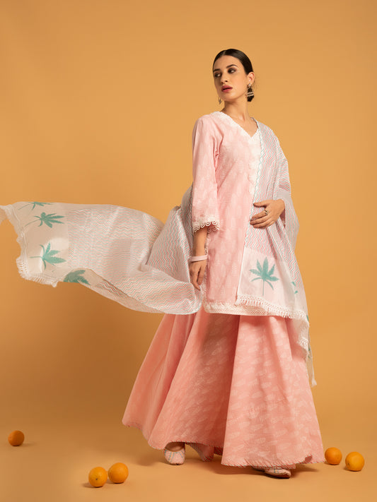 Gulaab Khari Pink Printed Cotton Suit Mulmul Dupatta