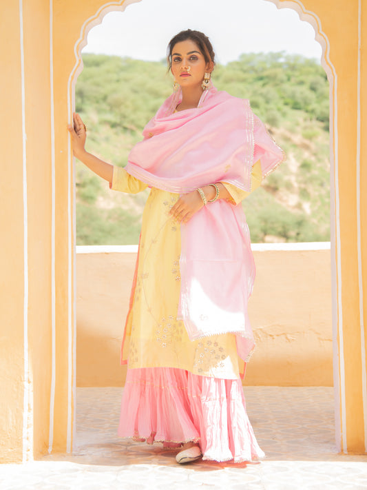 Noor Gulabi Gota Lehriya Work Kurta Set