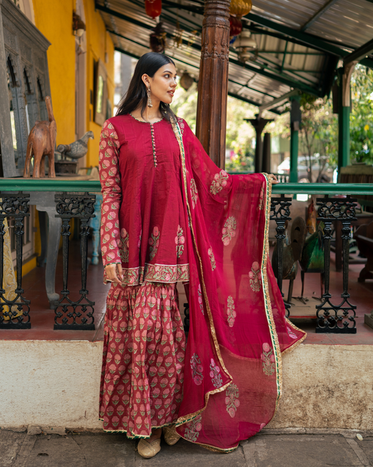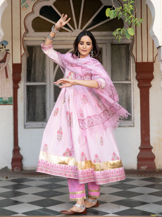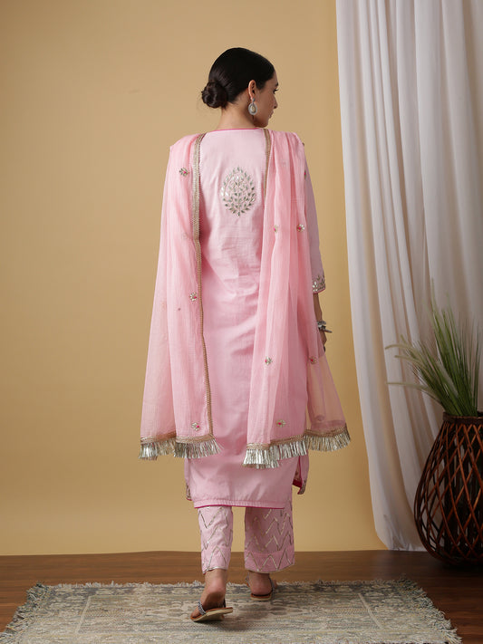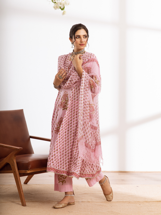 Noor Gulabi Gota Lehriya Work Kurta Set
