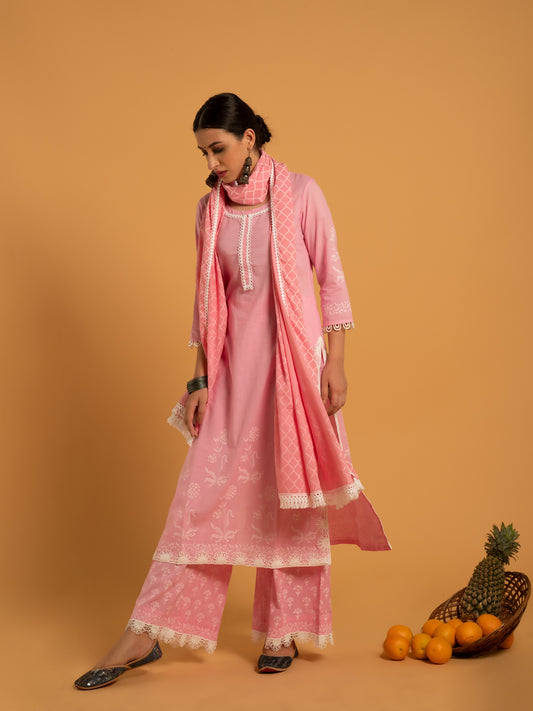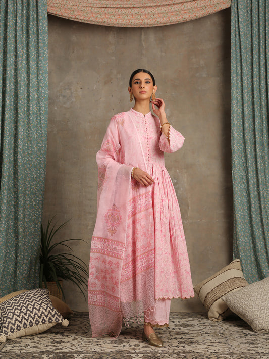 Gulaab Khari Pink Printed Cotton Suit Mulmul Dupatta
