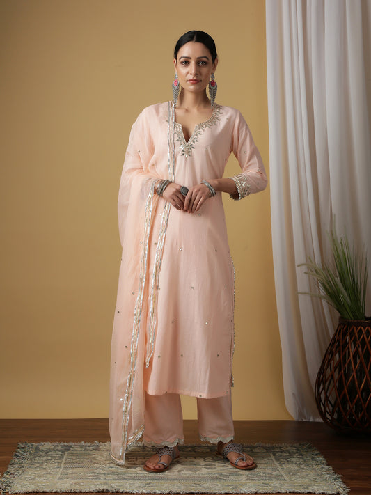 Ulfat Gulaabi Chanderi Silk Kurta Salwar Set
