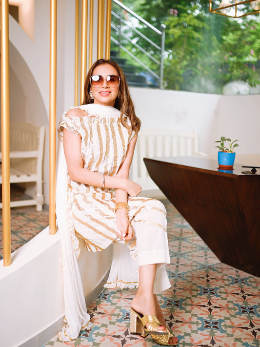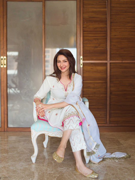 Monica Gupta in Mahira Suit Set Kurta Pants & Mulmul Dupatta