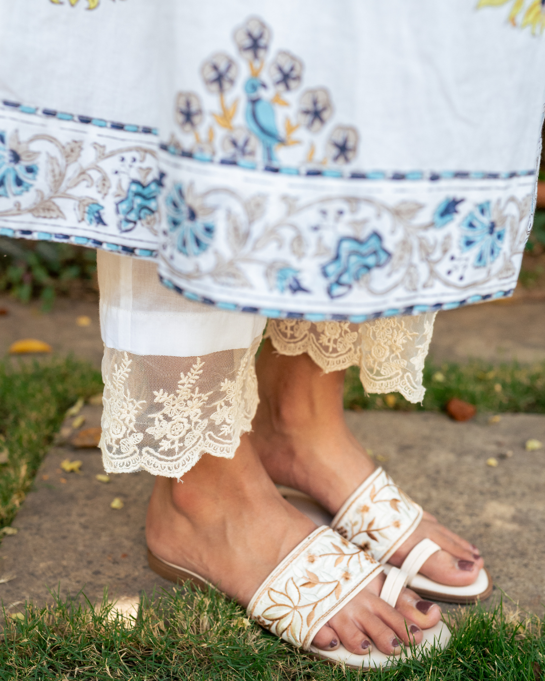 Kurta- A traditional bhopal style kurta with hand block printed florals finished with border detailing.