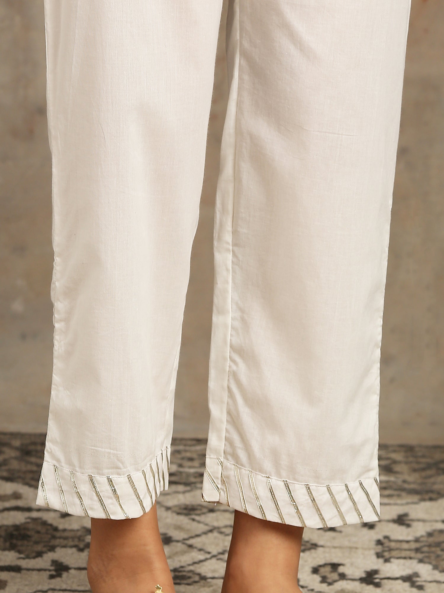 PANTS- Straight pants in ivory with handmade gota magzi detailing