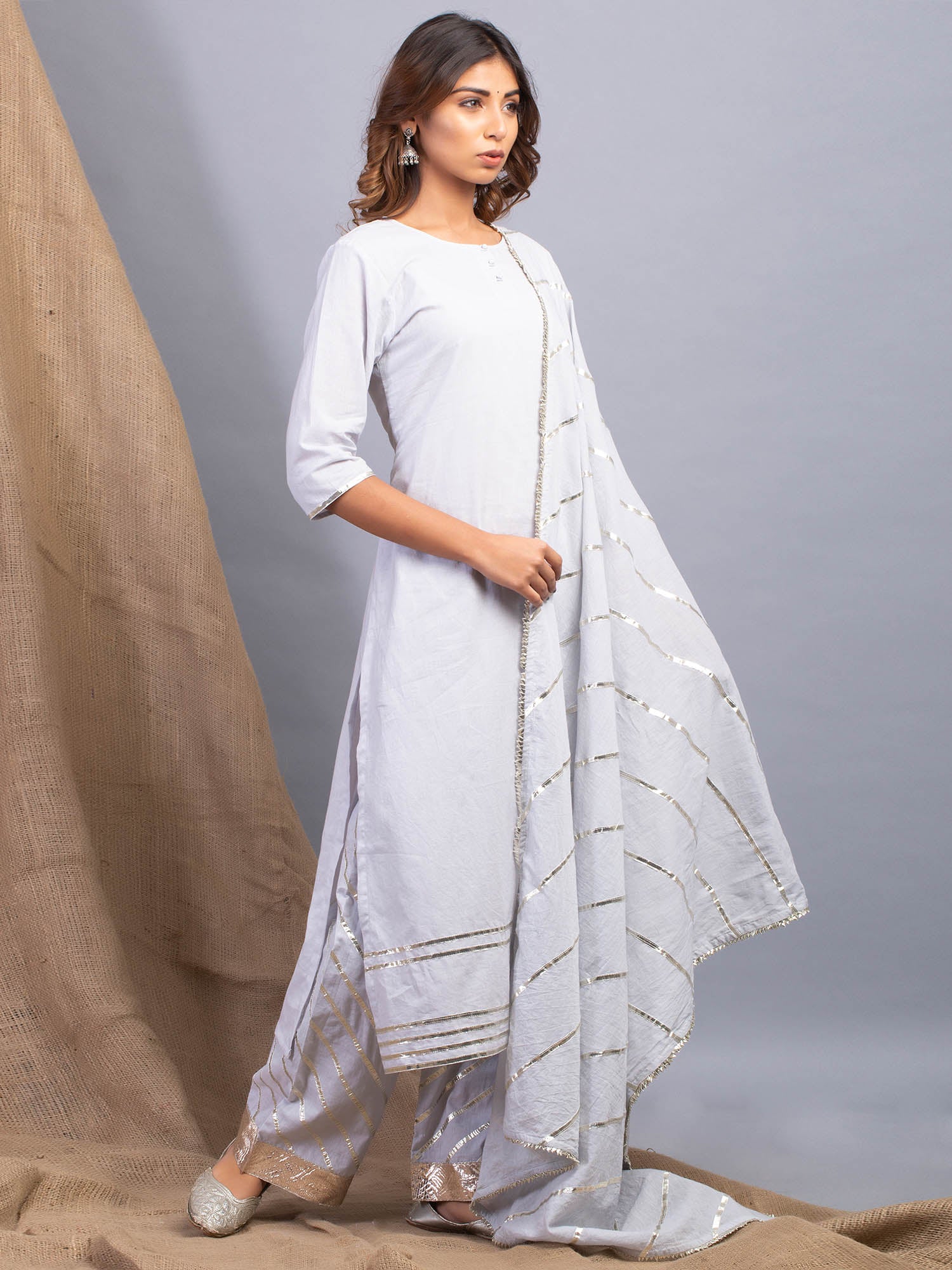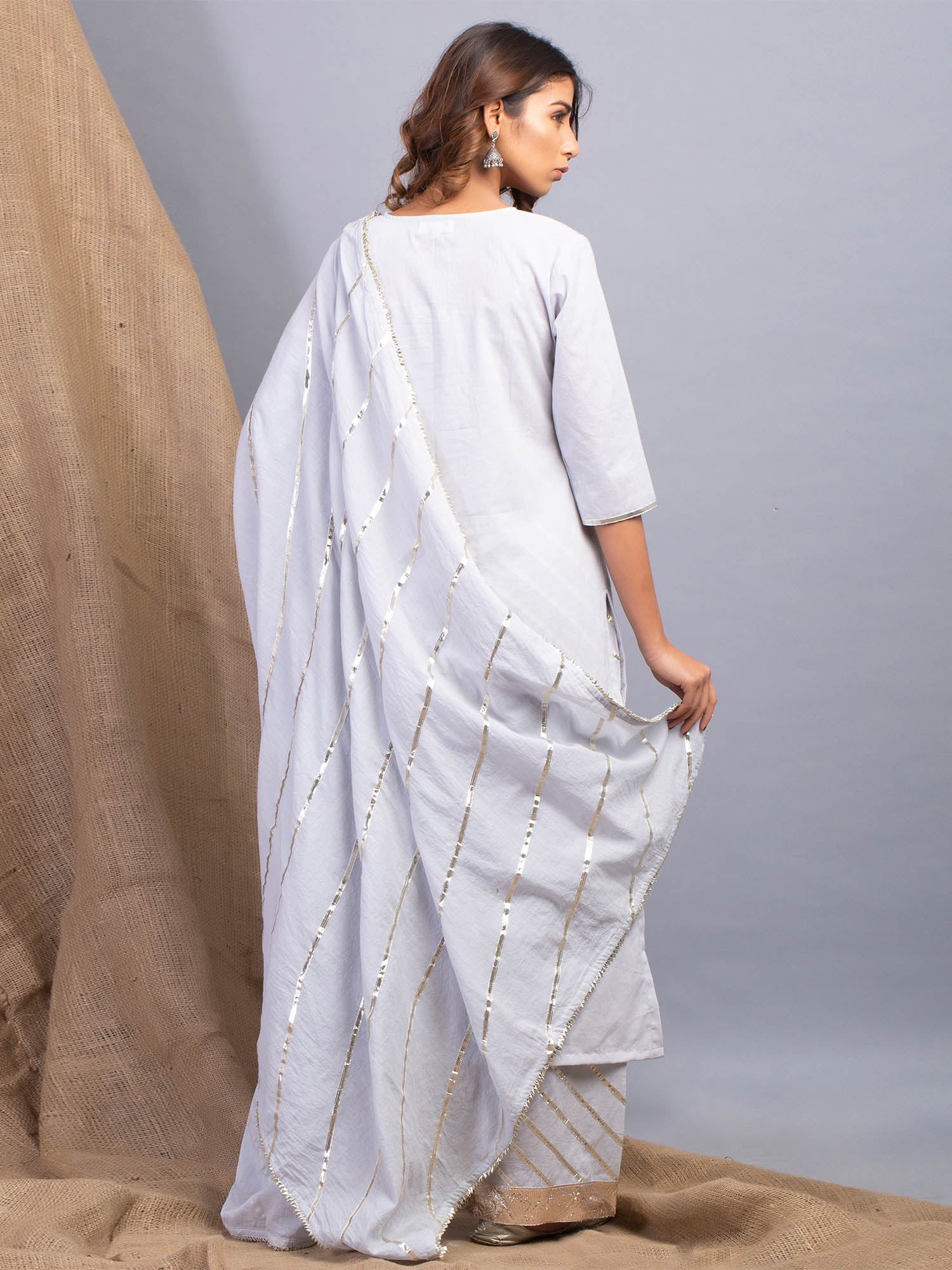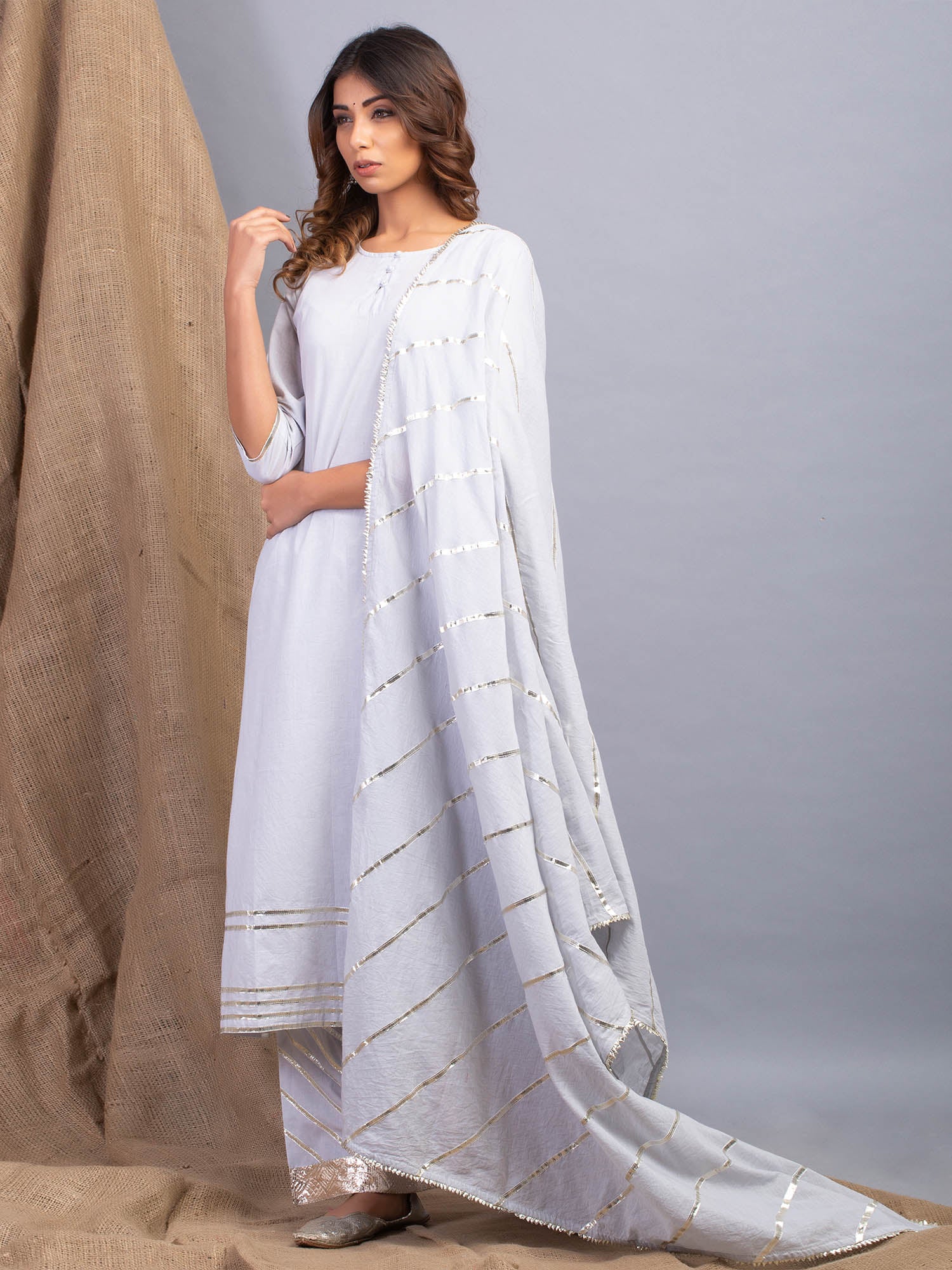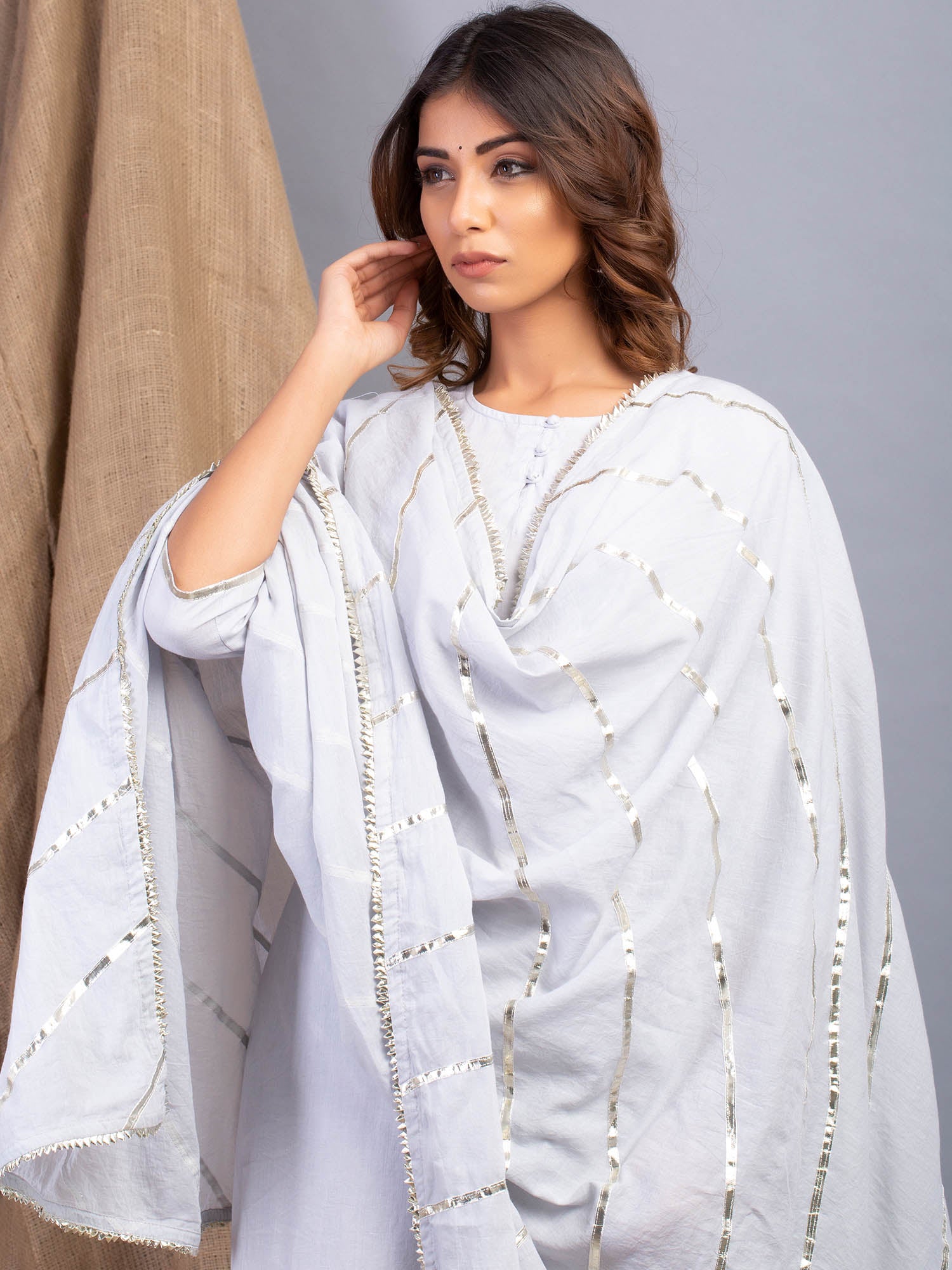 Set of 3 - Consists of kurta, farshi and dupatta , in hand spun mul-mul.