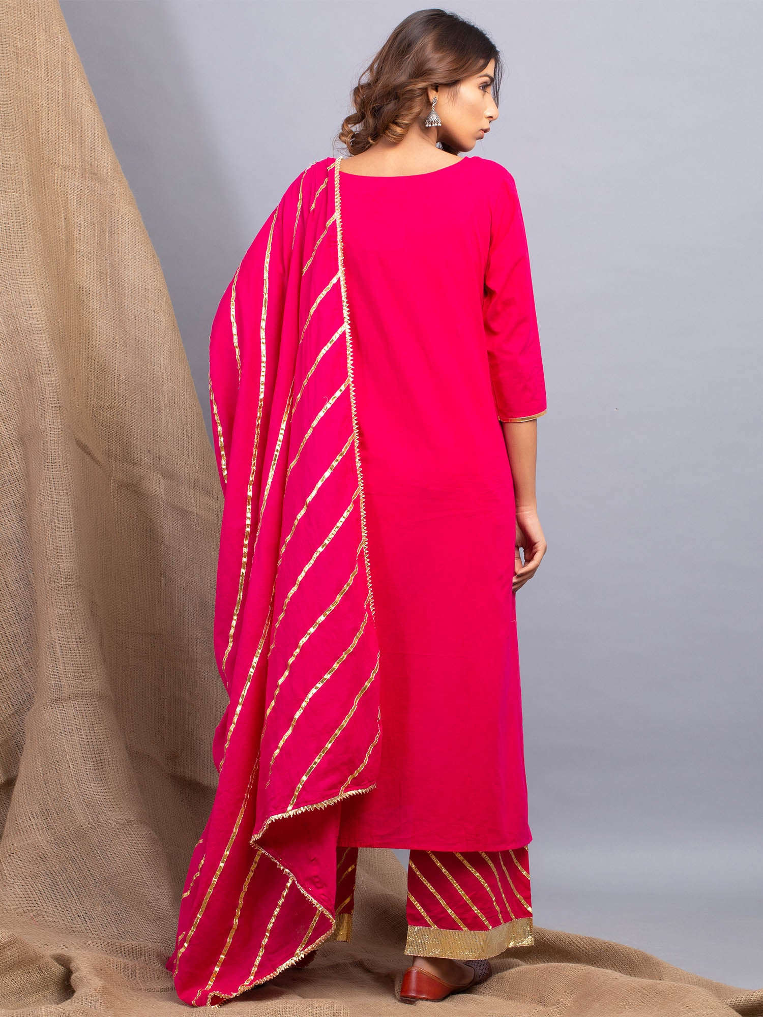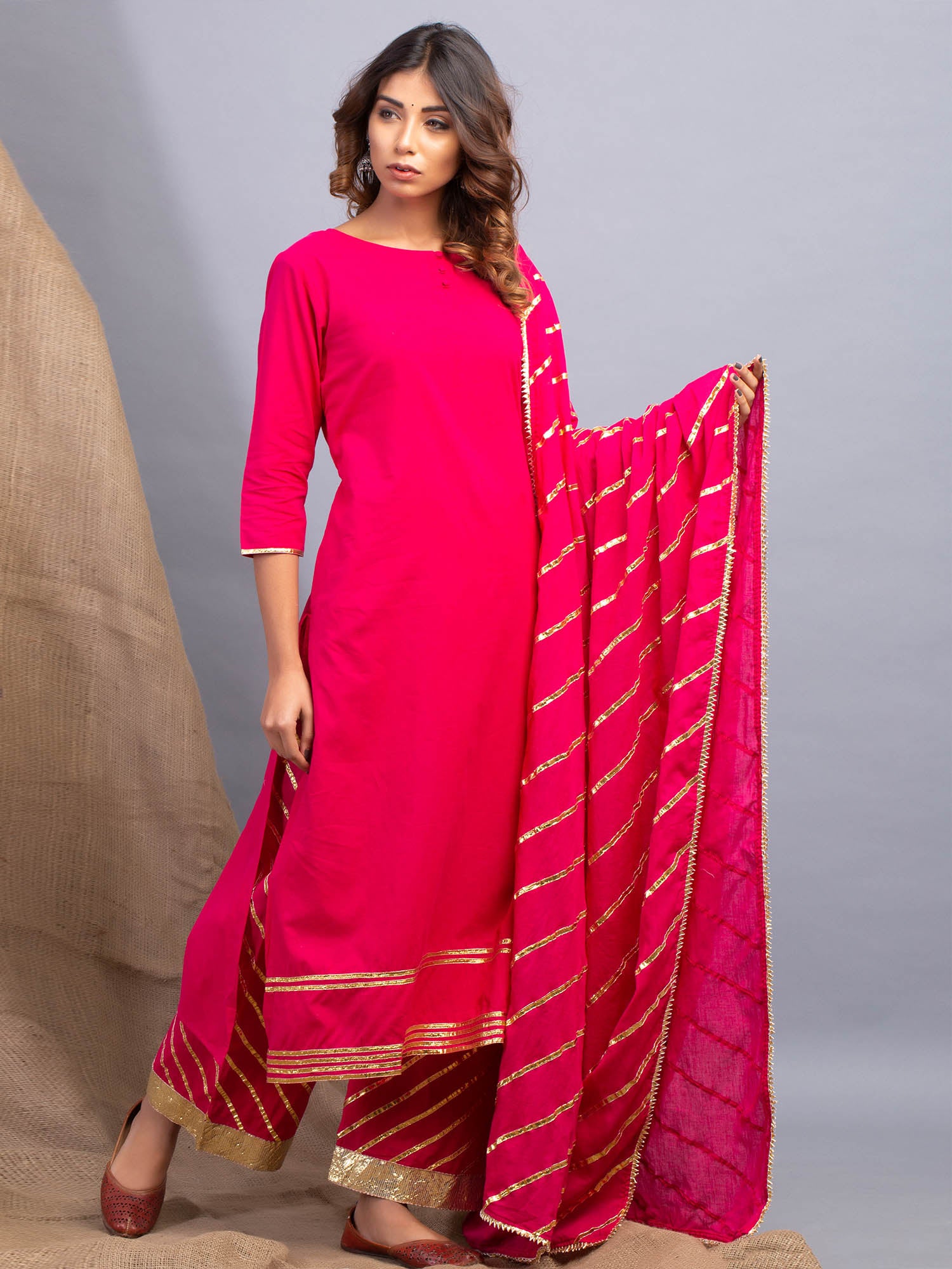 KURTA- A relaxed A-line silhouette with light gota highlights on sleeves and hem.Â