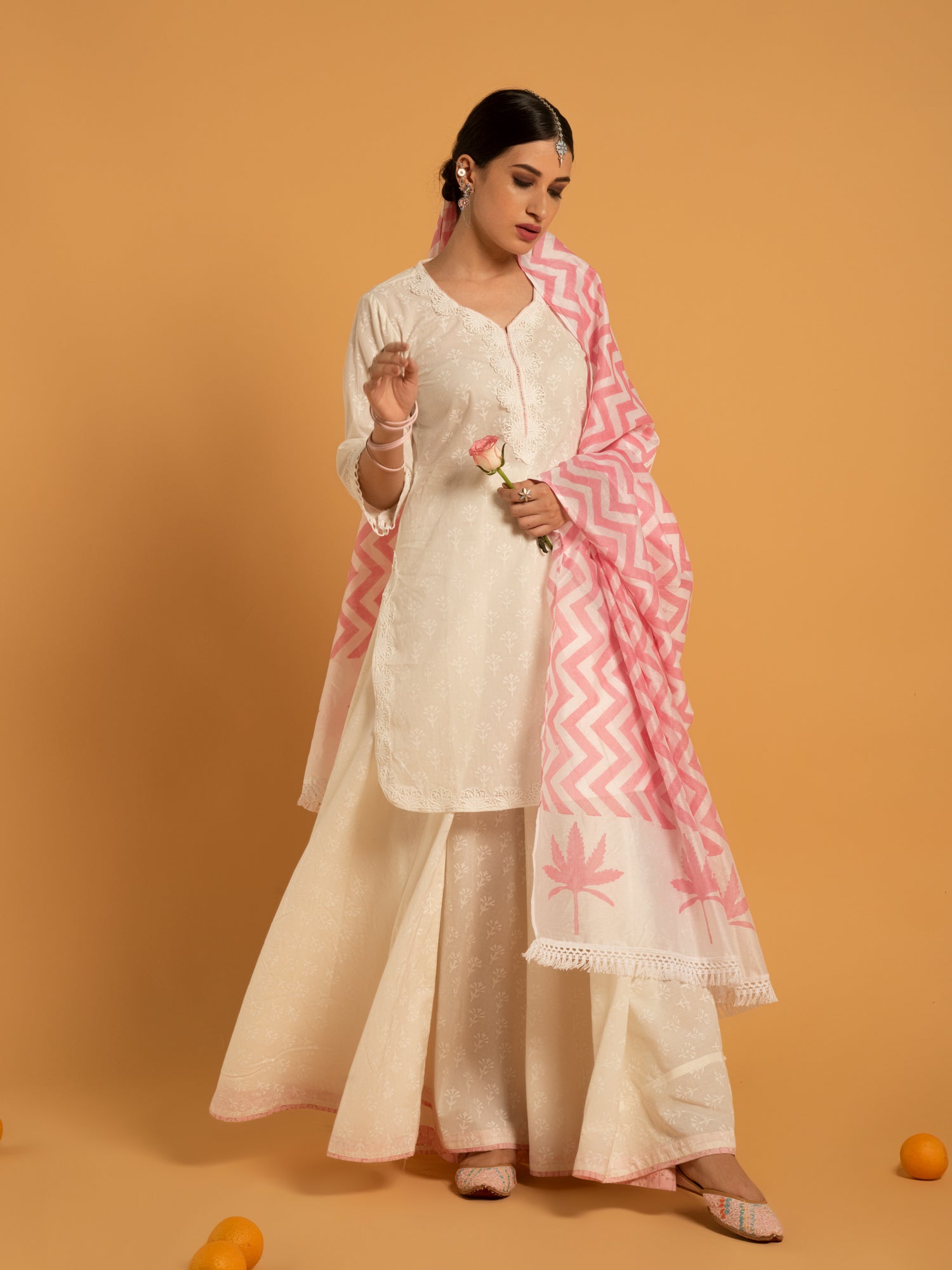 Set of 3 - Consists of kurta, sharara and dupatta.