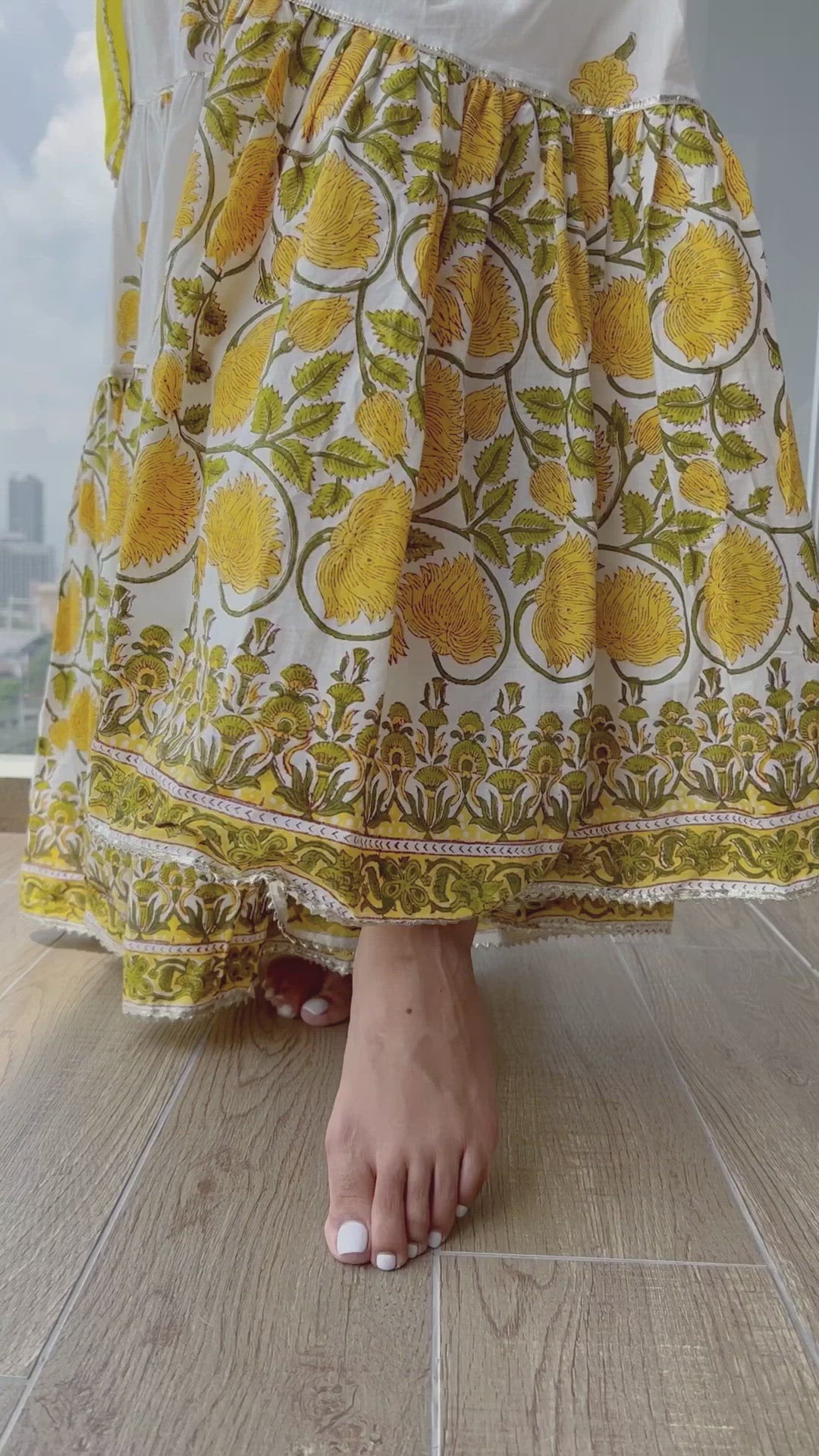 SHARARA- Floral jaal and butta printed sharara in cotton with got detailing.
