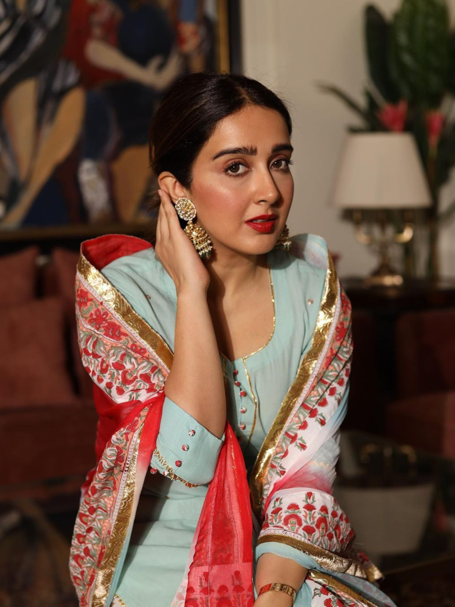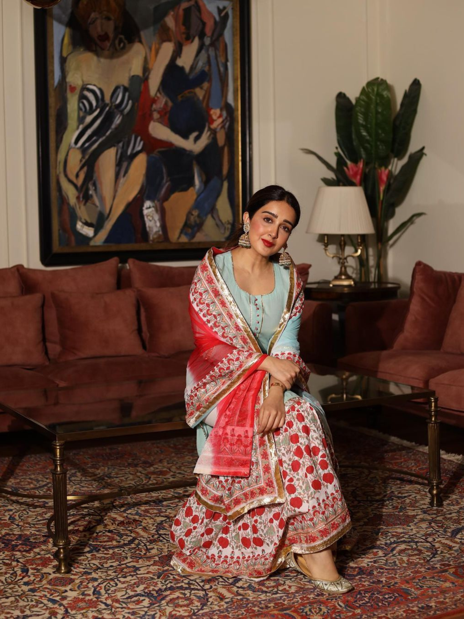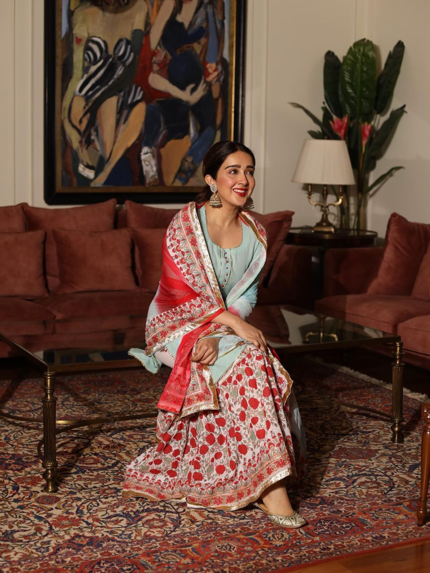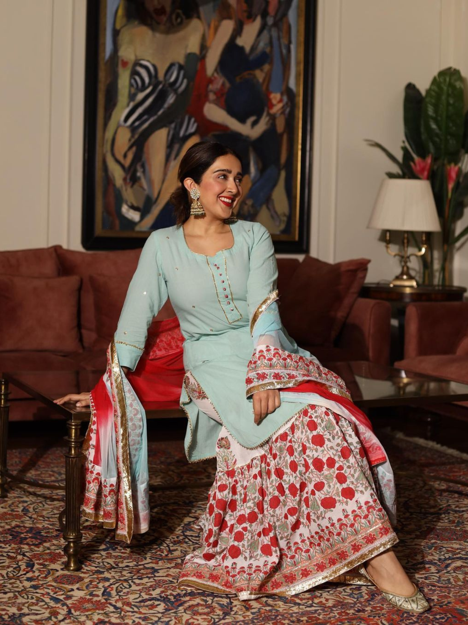 Sanjana batra in Mrinalini Gulaal Kurta Printed Sharara Set
