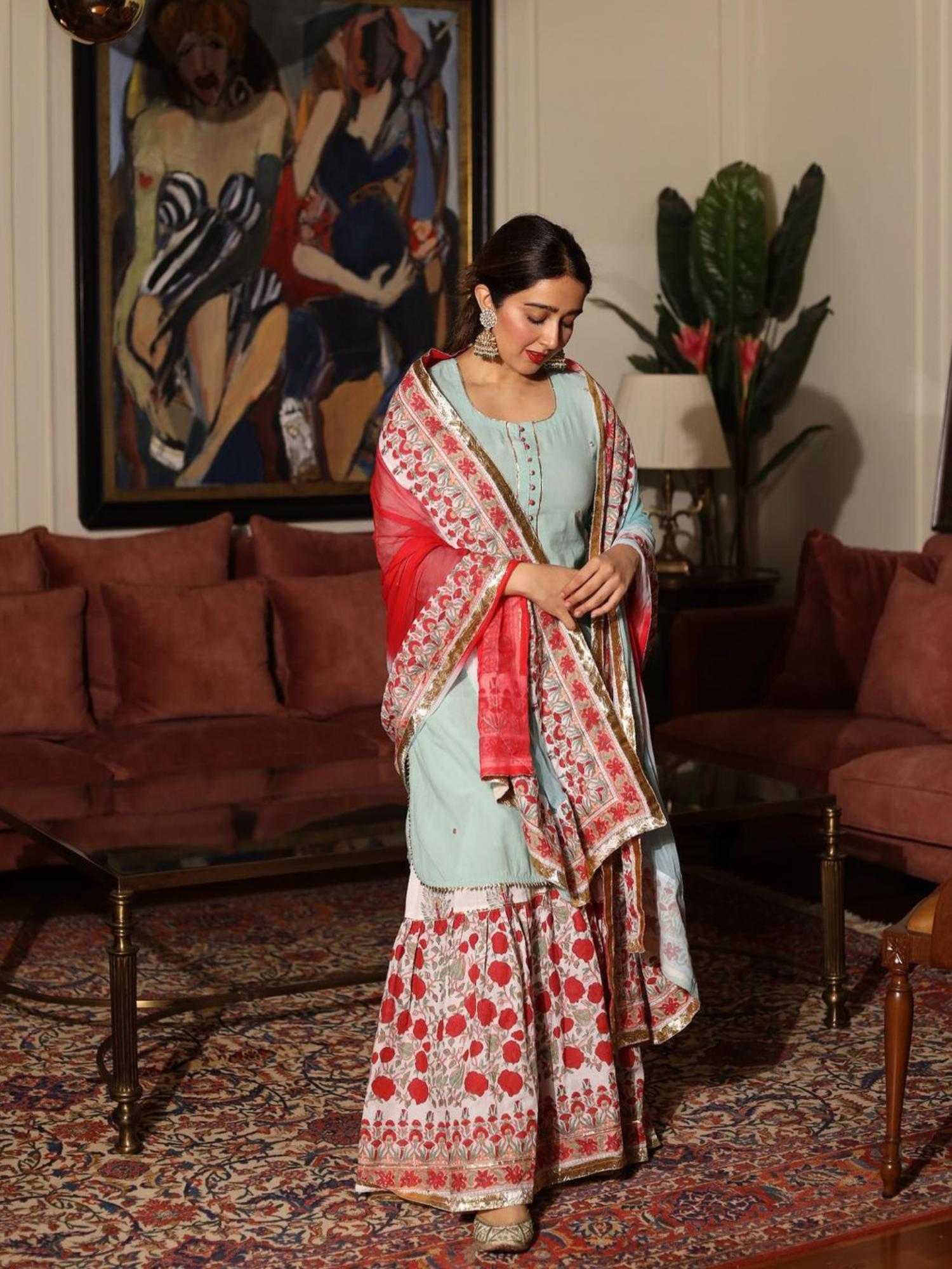 Set of 3 - Consists of kurti, sharara and dupatta.