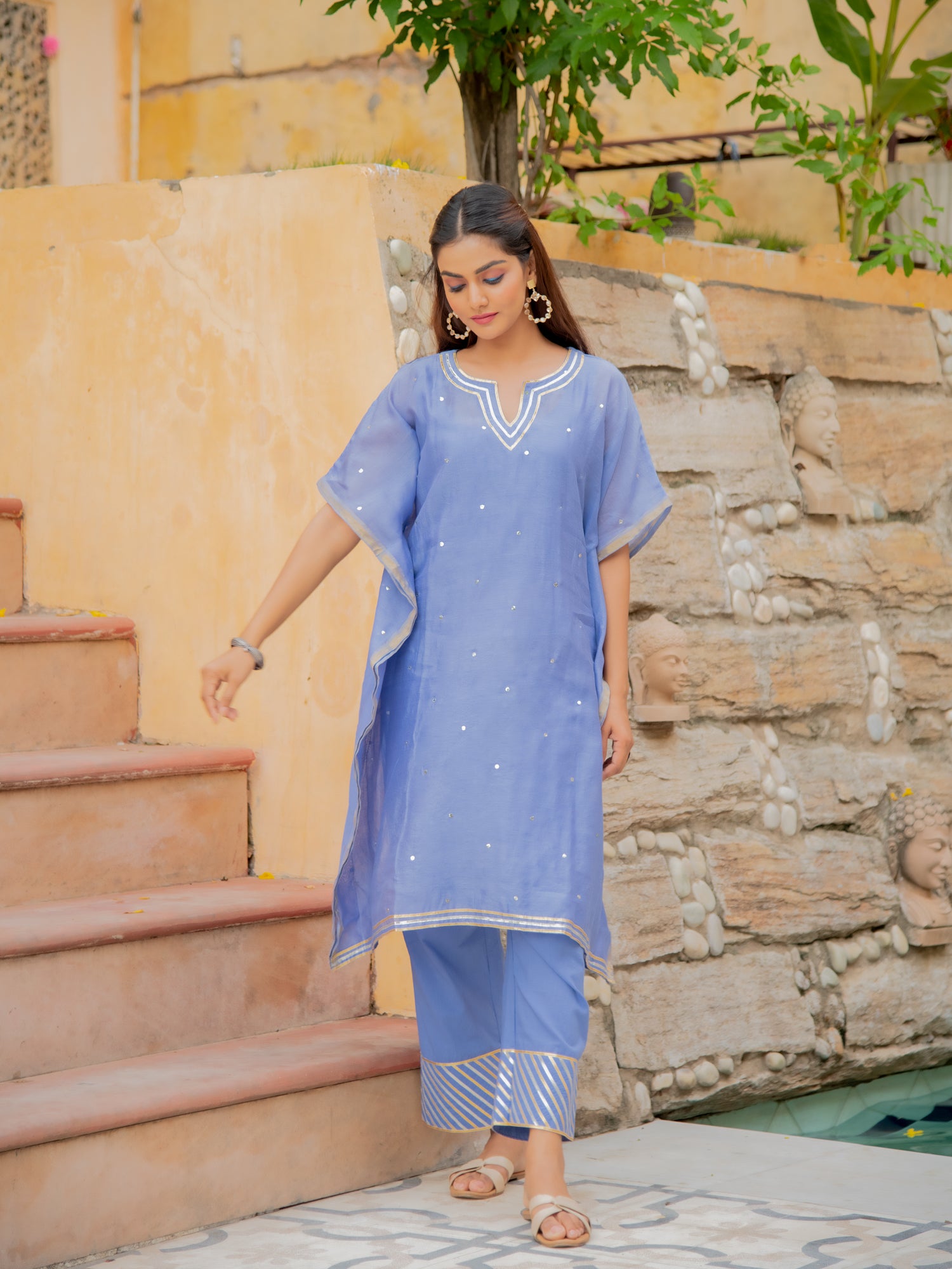 Painting you in the colors of the festive season with muted kaftan set in a soft powder blue.