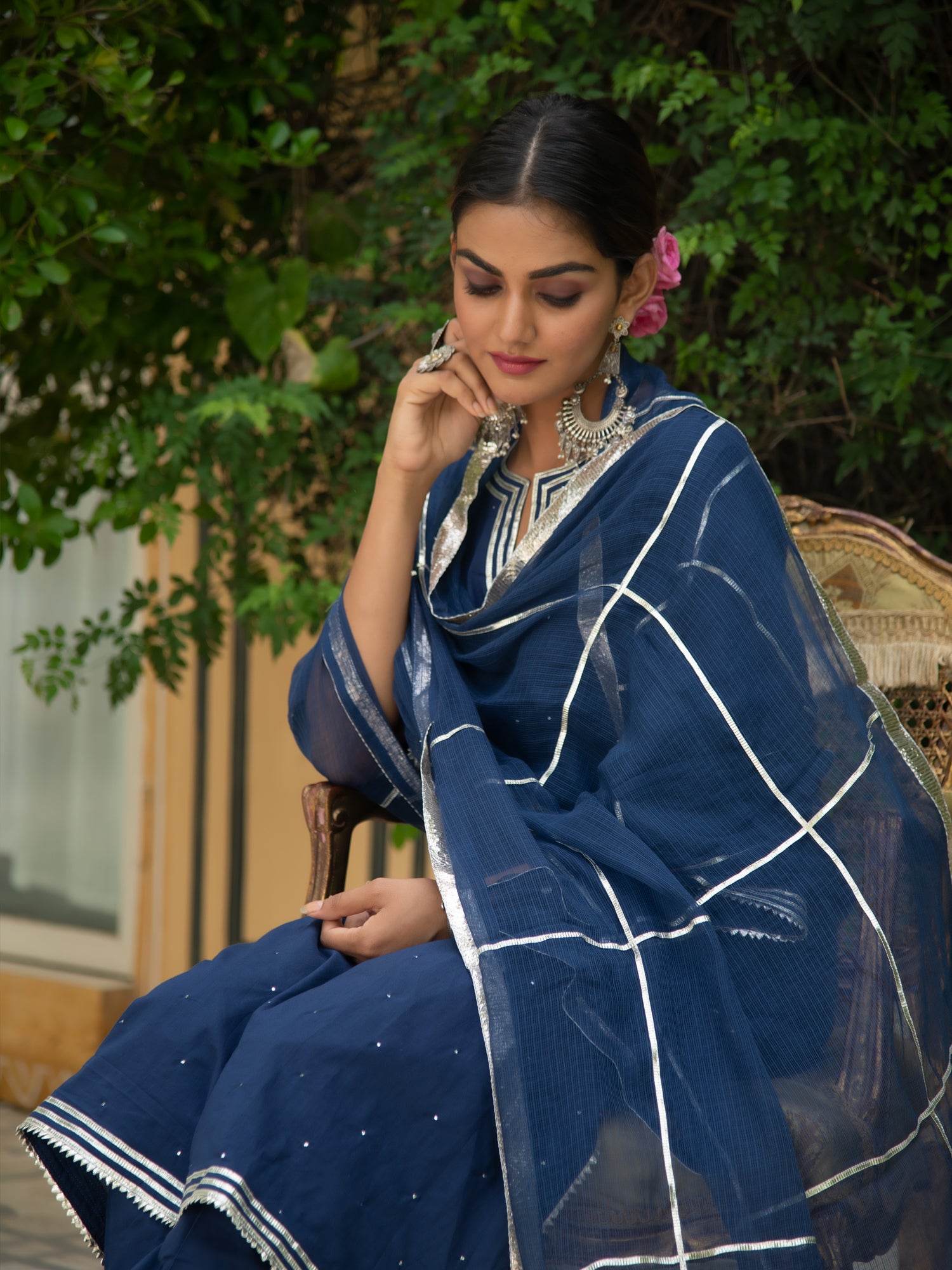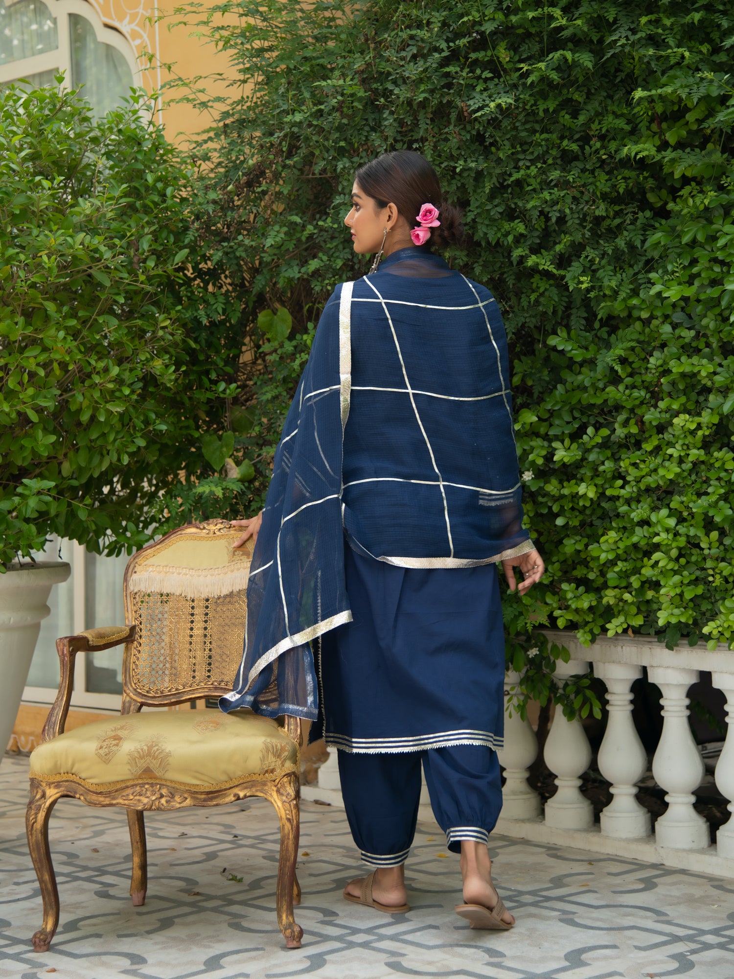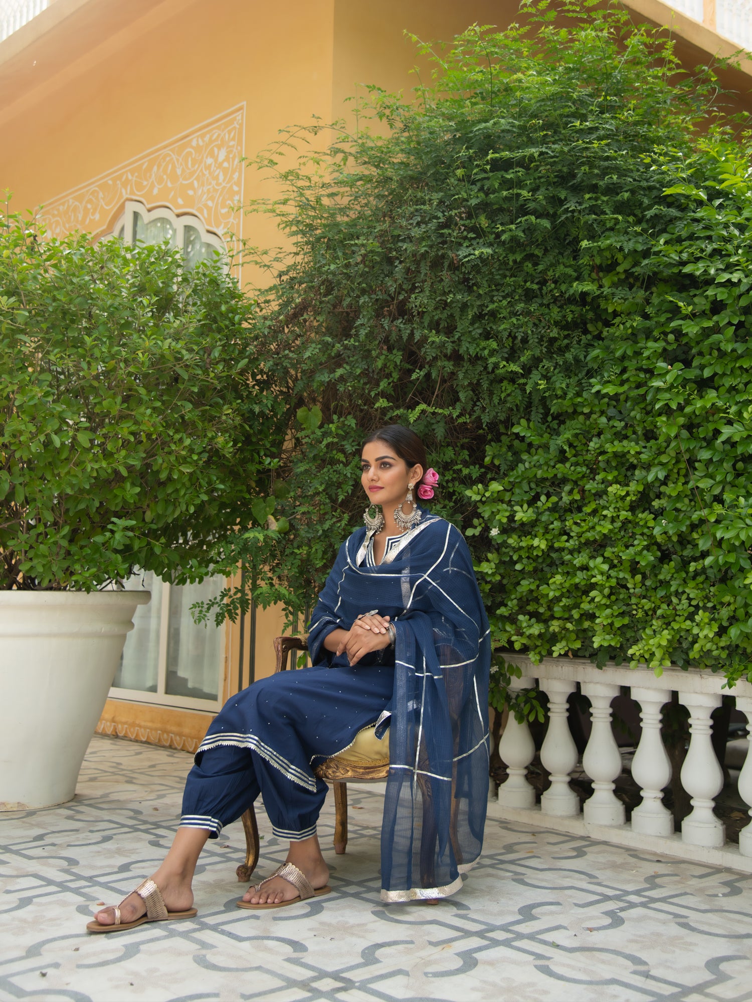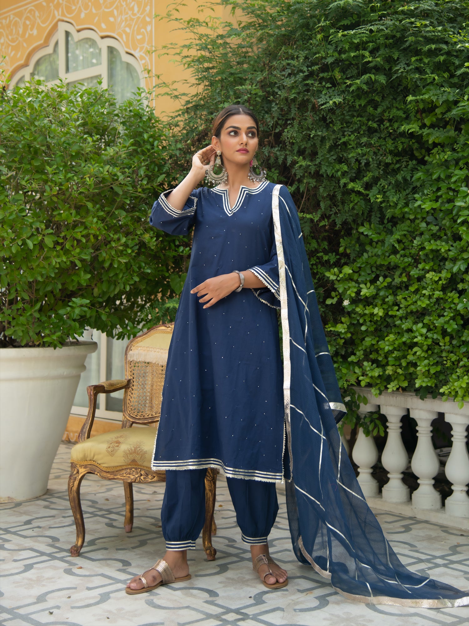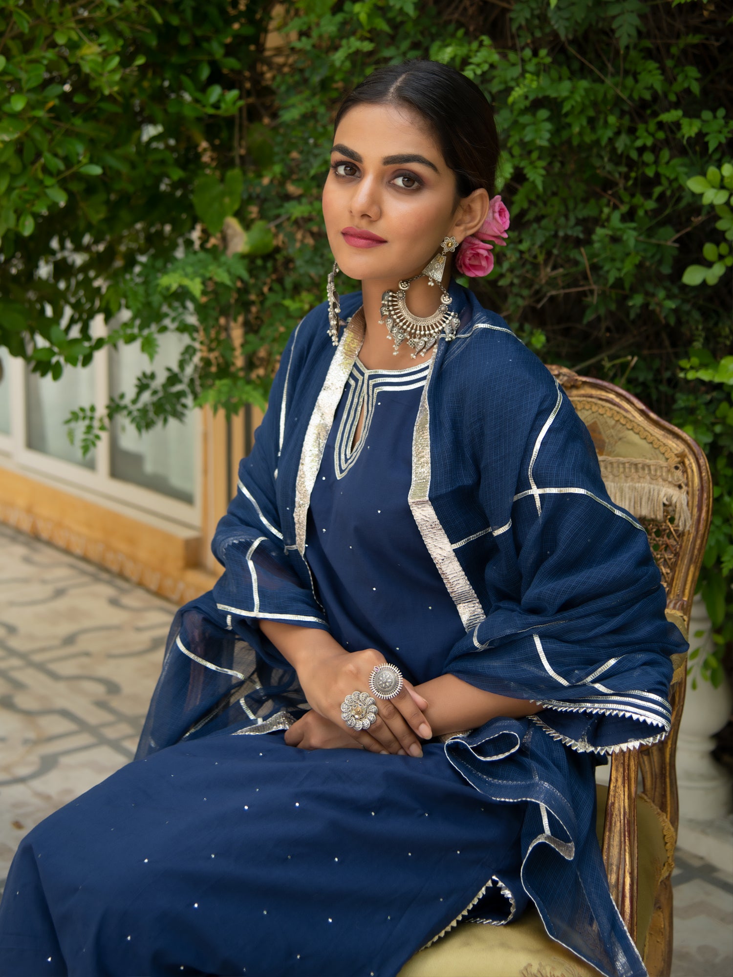 Painting you in the colors of the festive season with this deep midnight blue salwar set.