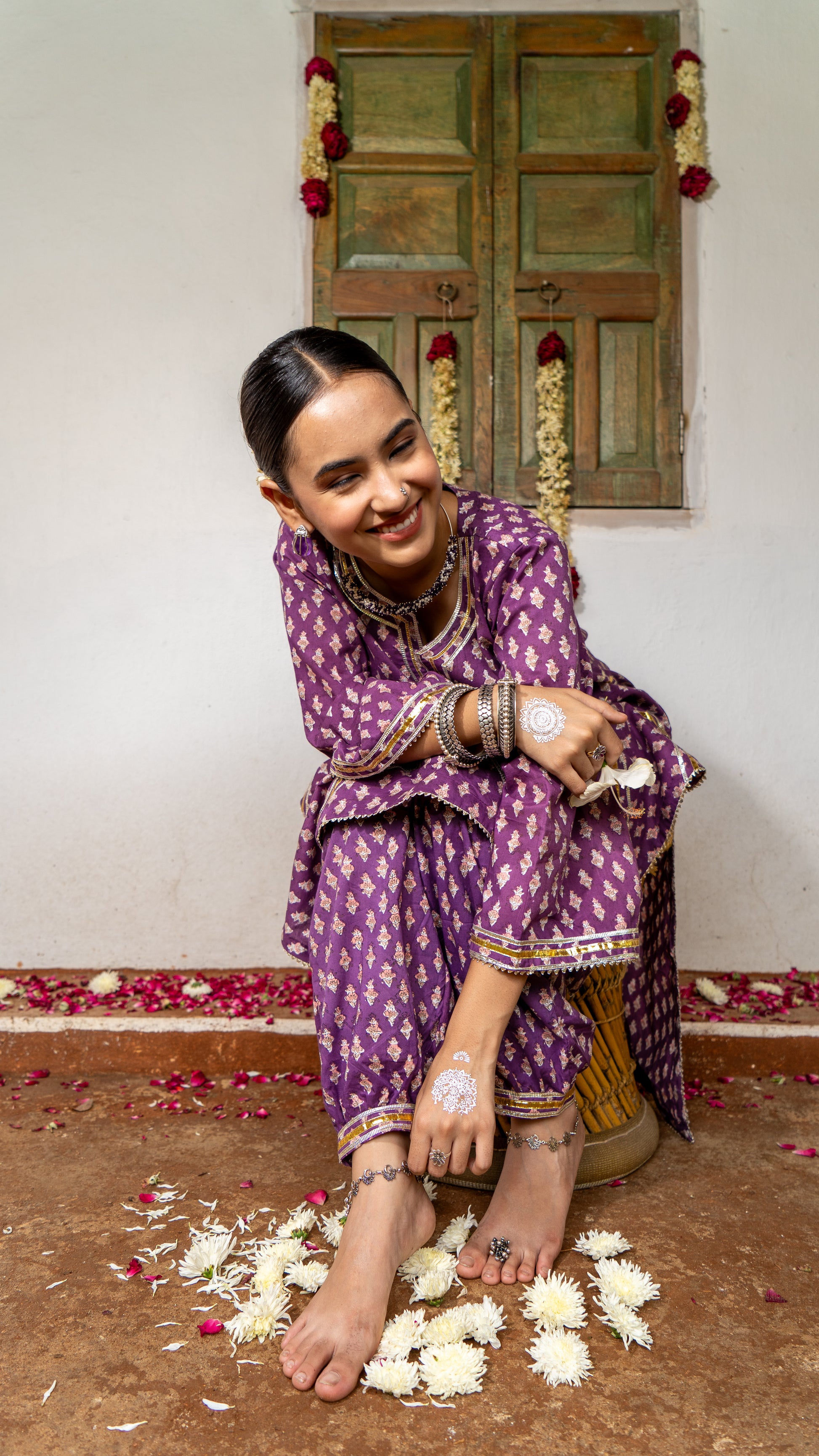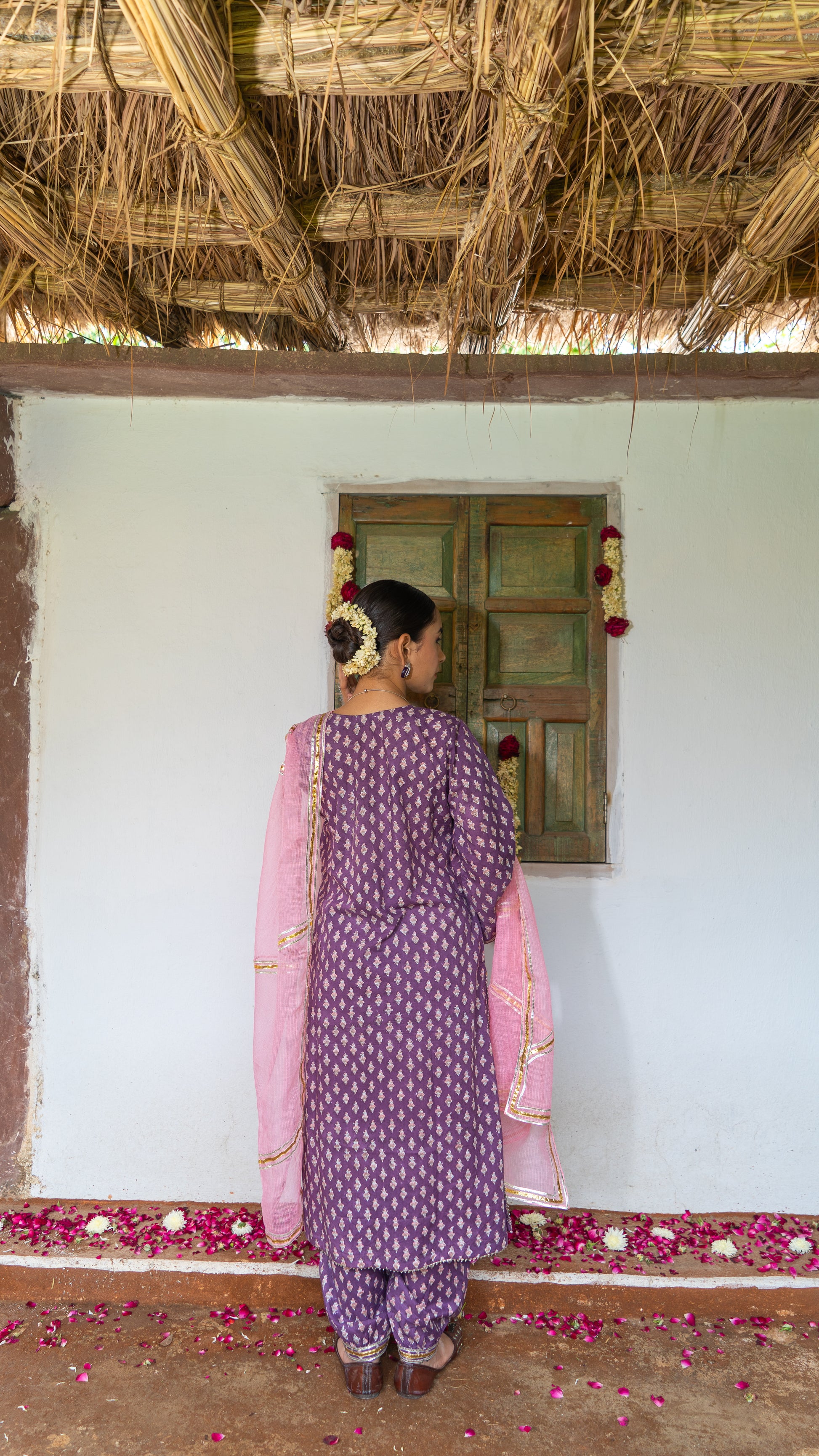 Saundh Purple and Peach hand block printed cotton Salwar set