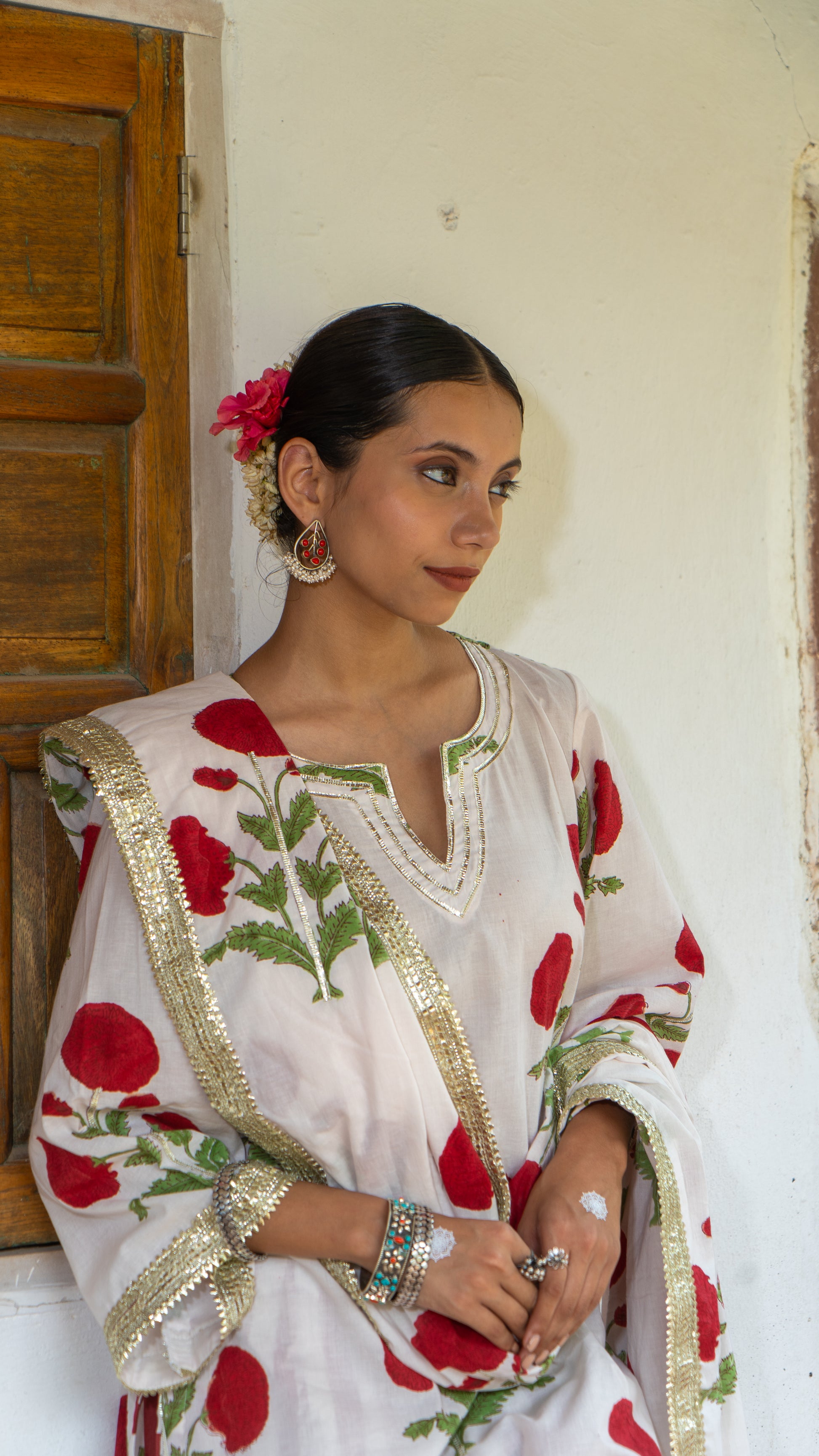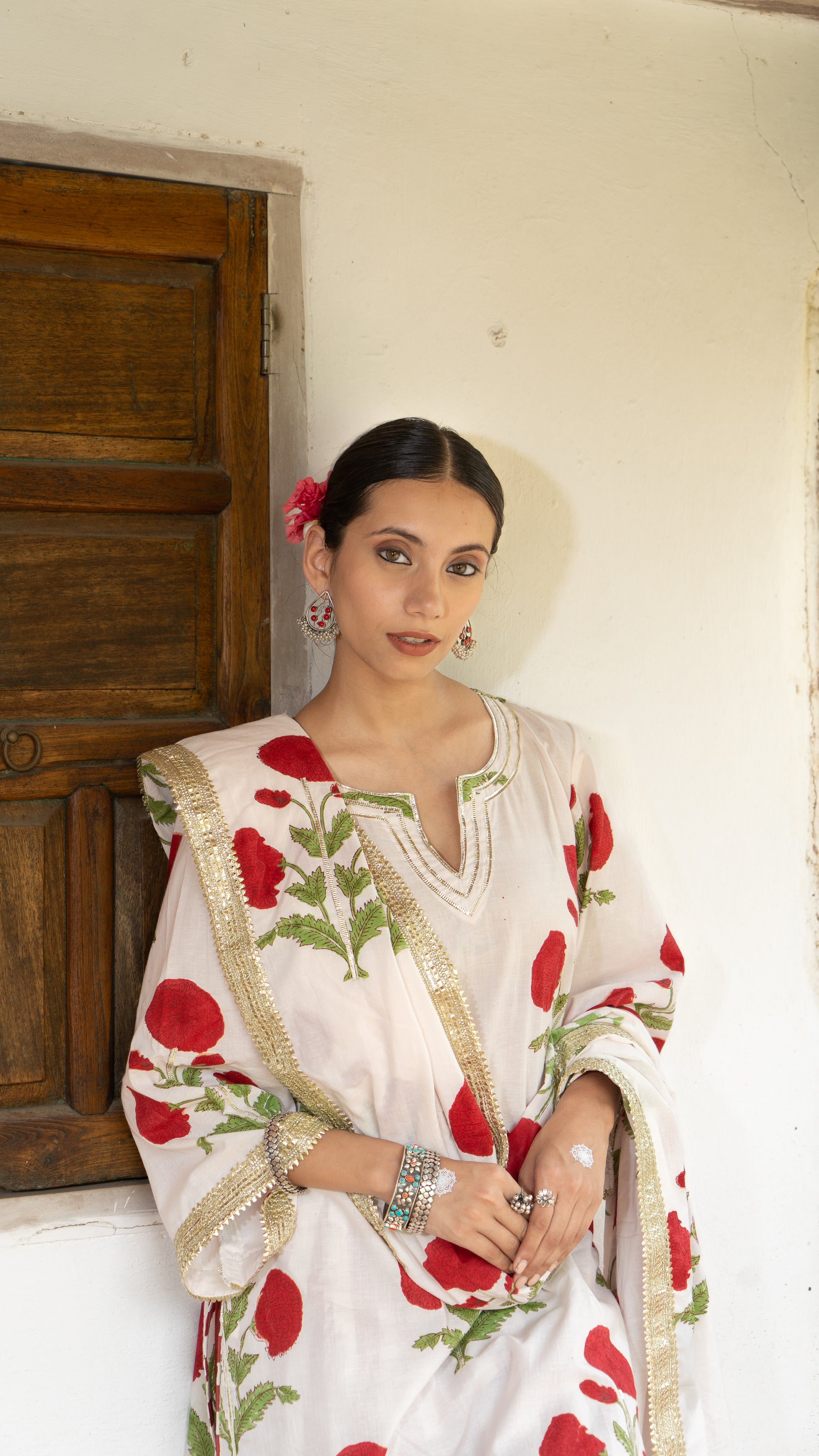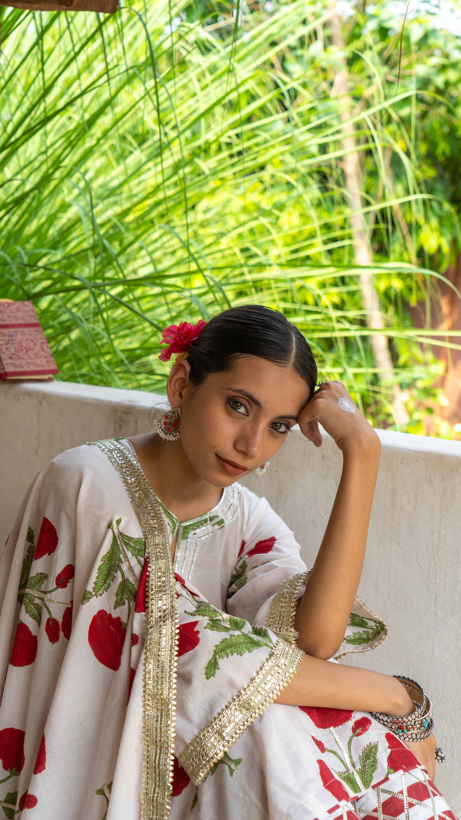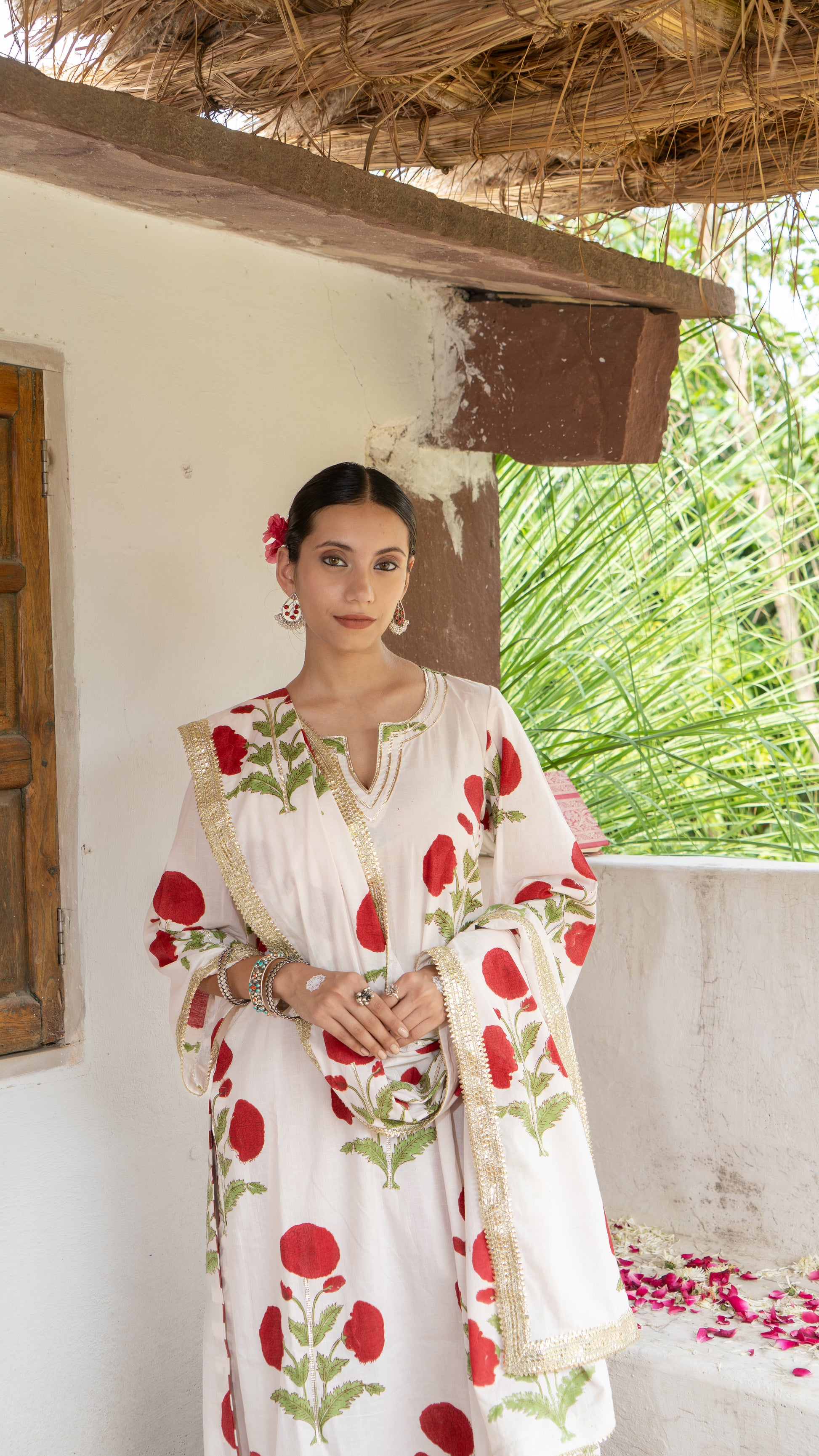 Saundh Red and White hand block printed mughal boota cotton kurta set