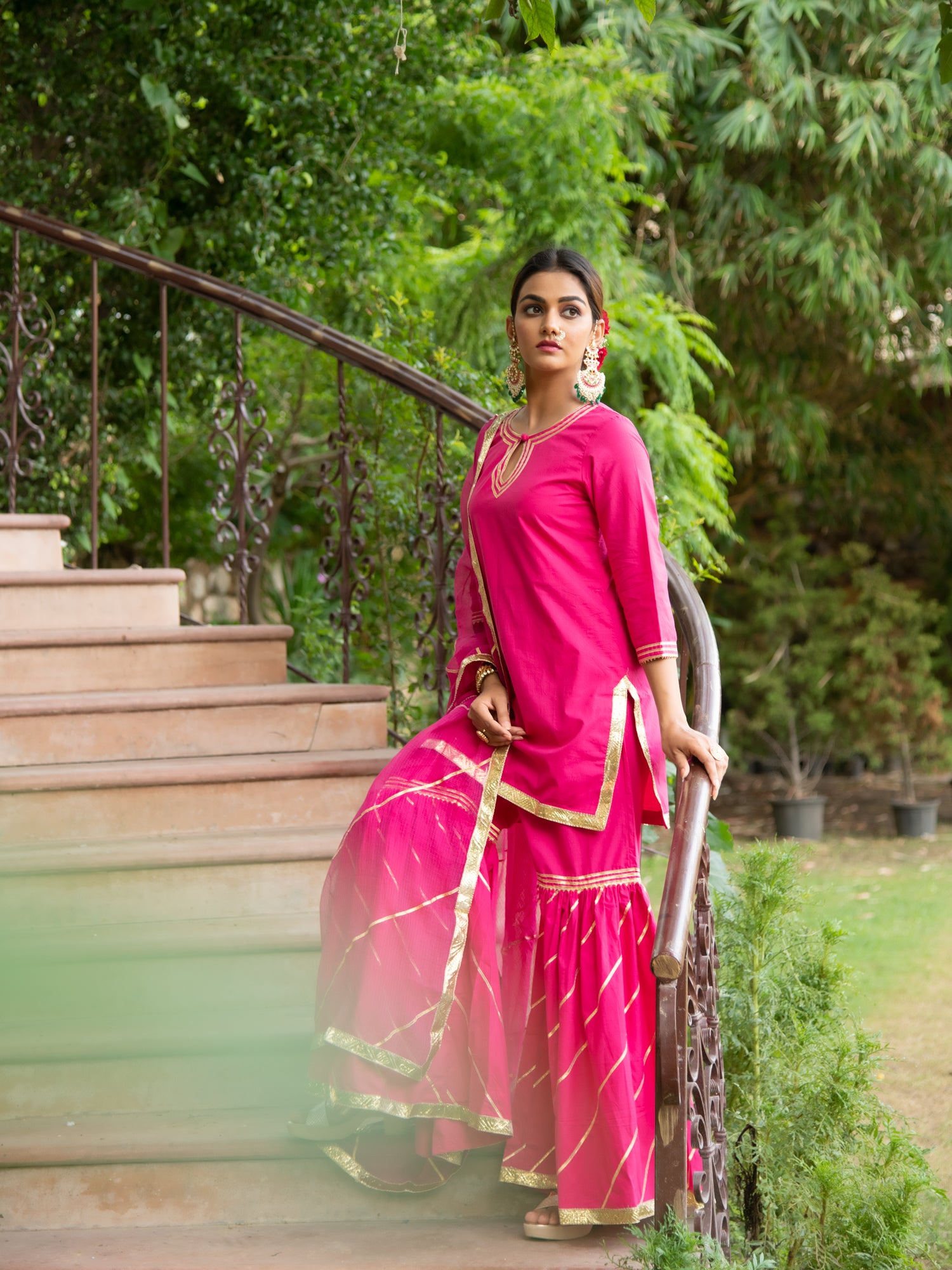 Set of 3 - Consists of kurta, sharara and dupatta.