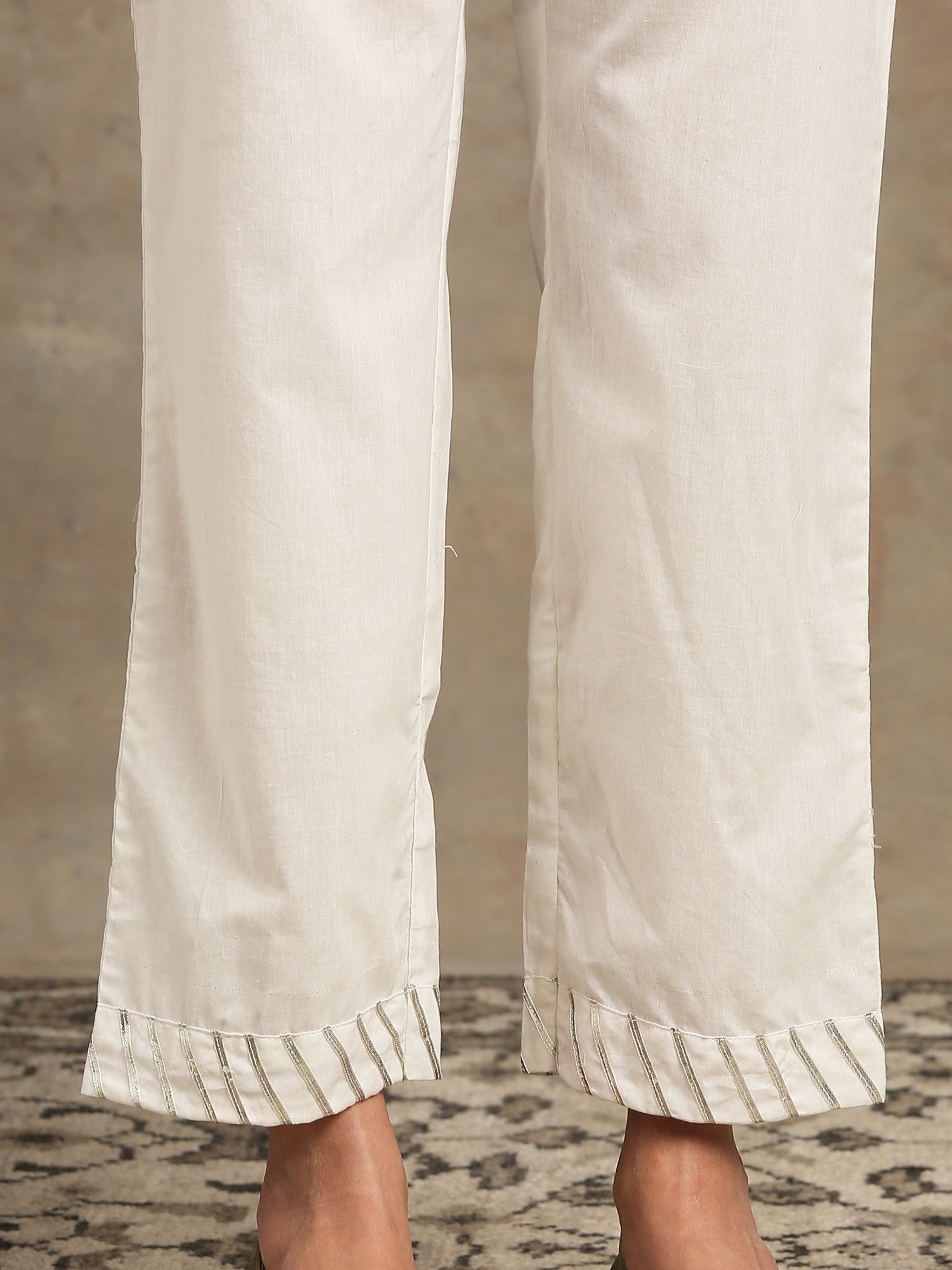 PANTS- Straight pants in ivory with handmade gota magzi detailing